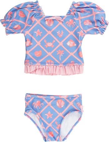 Puff Sleeve Ruffle Tankini 2-Piece Swimsuit is the perfect blend of style and functionality for girls. This tankini swimsuit features charming puff sleeves and delightful ruffles that add a playful touch to the pattern. The 2-piece swimsuit for girls is designed with a bow detail and signature rear ruffles that enhance its adorable look. Ideal for active days at the beach or pool, it offers full seat coverage and is crafted with 4-way stretch fabric that resists pilling and snagging, enhancing durability. Plus, it includes UPF 50+ sun protection to keep your little one safe from harmful rays. Dive into summer with this stylish and protective ruffle tankini swimsuit from our swim collection.