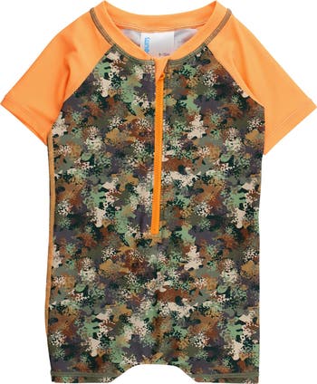 Short Sleeve One Piece Rash Guard Swimsuit is the perfect addition to your boy's summer wardrobe. This boys' rash guard showcases a striking print, making it a stylish choice for any water activity. Designed with your little adventurer in mind, this one-piece rash guard swimsuit features a half-zipper and snaps for easy changing, ensuring convenience and comfort during busy beach or pool days. Crafted with 4-way stretch fabric, this boys' short sleeve swimsuit adapts to all movements, providing excellent freedom of motion while resisting pilling and snagging, ensuring it remains looking great even after multiple uses. Moreover, it boasts UPF 50+ sun protection, shielding your child from harmful UV rays during those sunny days outdoors. Ideal for active boys who love to play and swim, this unlined boys' swimwear is durable and reliable. Whether it’s for swimming lessons or seaside adventures, the Short Sleeve One Piece Rash Guard Swimsuit is a must-have for fun and protection under the sun.