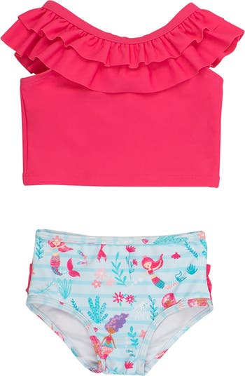 This ruffle tankini is a delightful choice for girls who love fun and flair in their swimwear. Featuring ruffles, it's perfect for sunny days at the beach or poolside adventures. The swimsuit ensures full seat coverage and includes signature rear ruffles that add a whimsical touch. Designed with practicality in mind, this girls' swimwear is fully lined and crafted with a 4-way stretch fabric that resists pilling and snagging, ensuring long-lasting wear. The UPF 50+ sun protection adds an extra layer of safety to shield your little one from harmful UV rays, making it an ideal option for outdoor activities. Whether diving into the waves or building sandcastles, this ruffle tankini combines style, comfort, and protection, making it a must-have in your girl's swim collection.