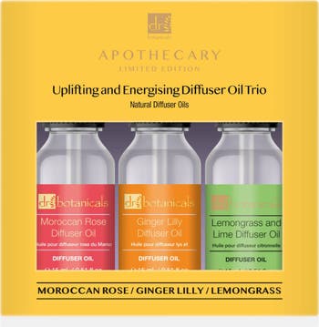 - Experience an aromatic escape with the Dr Botanicals Uplifting and Energising Diffuser Oil Trio featuring three distinct blends of organic Lavender Patchouli Cedarwood Eucalyptus Jasmine and Orange to enhance your environment.