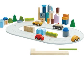 Unleash your kiddo's imagination with this delightful set made of chemical-free rubberwood perfect for building their perfect city. Through play, children will develop problem-solving skills, self-expression, mathematics, continuity, permanence and creativity.