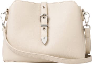 Roomy side pockets make organization a breeze with this lightly structured faux-leather crossbody bag.