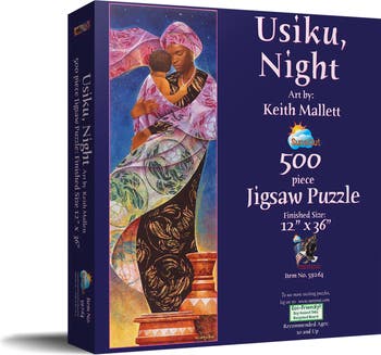 Experience the enchanting world of renowned artist Keith Mallett with his 500-piece jigsaw puzzle, "Usiku, Night." Crafted by SunsOut, a woman-owned small business recognized for their eco-friendly and durable puzzles, this artwork captures Mallett's beauty and depth across the 12" x 36" puzzle. Assembling each interlocking piece of high-quality recycled cardboard and soy-based inks offers an engaging journey through color and creativity. Mallett’s fully licensed artwork gives a glimpse into Americana, presenting a unique storytelling opportunity that showcases cultural richness and emotional depth. This puzzle acts as a bridge to both history and modern artistry and is perfect for family gatherings or quiet evenings alike. Purchasing this puzzle not only supports sustainable practices and female entrepreneurship, but it also promises a worry-free guarantee with SunsOut’s commitment to quality. The "Usiku, Night" jigsaw puzzle in its full-color display box makes a beautiful gift for any occasion, from Mother’s Day to family get-togethers, or simply as a personal treat. This puzzle promises hours of engaging enjoyment and artistic appreciation, making it more than just a pastime—it's a celebration of creativity and a cherished addition to your collection.