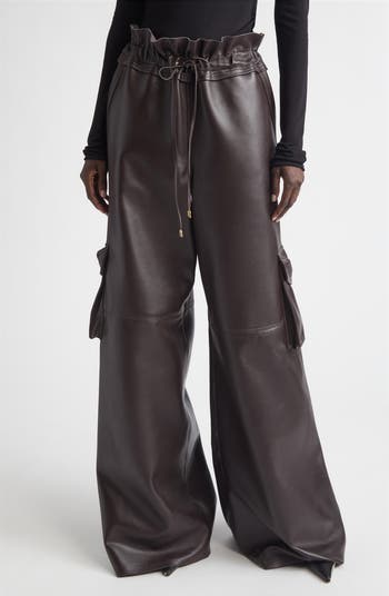 Tailored to create a sense of edge, sophistication and sex appeal, these lambskin-leather pants featuring a paperbag waist and wide legs takes cues from the cargo moment with plenty of dimensional pockets.
