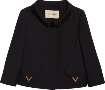 Alessandro Michele fell under the spell of retro references for his first Valentino outings, referencing silhouettes of the swinging '60s with this trim jacket fashioned from the maison's woolly, silk-enriched Crepe Couture fabric and adorned with gilded logo hardware.