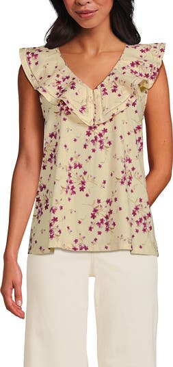 An on-trend addition to your wardrobe, this soft cotton top combines a touch of class with knit comfort. A graceful ruffled neckline adds a dash of personality andpairs beautifully with dress pants, a skirt or jeans.