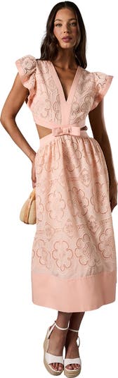 This enchanting midi dress combines timeless elegance with modern design elements, perfect for those special occasions when you wish to make a lasting impression. The delicate lace overlay creates a romantic aesthetic whilst the strategic cut-out detail adds a contemporary twist. For cooler weather, layer with a tailored blazer or delicate pashmina. The versatile midi length works beautifully for garden parties, formal receptions or evening soirées.