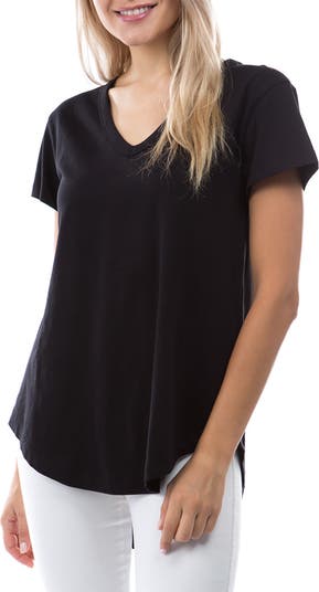Stay casual in a lightweight cotton T-shirt made with a curved high-low hem great for days when you want a little extra length.