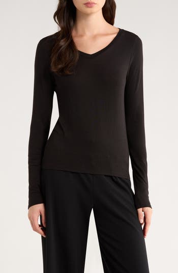 Complete your casual uniform with this V-neck T-shirt that will be a fast favorite with its figure-skimming fit and subtle sheen that comes from a combination of stretchy organic cotton and sustainable Tencel™ lyocell.