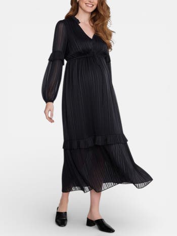 MOTHERHOOD MATERNITY V-Neck Long Sleeve Tiered Maxi Dress, Alternate, color, Black
