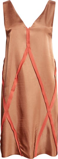 This sleeveless midi dress is shaped through exposed fusing, usually hidden within construction. Angular panels run across the body, creating a graphic structure that sits on the surface rather than beneath it. A deep V neckline sharpens the silhouette, while the clean cut allows the construction to remain the focus. At the back, the MM6 white stitch line marks its signature.