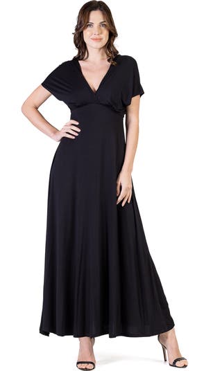 A formal look has never been so comfortable. With its regal full length skirt this womens maxi dress makes for an elegant formal or casual look. Featuring a v neck line and v cut on the back, cap sleeves, flared a line skirt, defined empire waist, and is made from a soft and comfortable stretch material in four beautiful year round colors and it is machine washable for easy care. The perfect dress to keep in your closet for any special occasions or just an eye catching date night look. Made from a comfortable stretch material. rayon spandex blend.