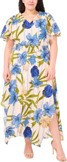 An airy front slit and fluttery ruffle sleeves dial up the resortwear vibe of this smocked-waist maxi dress perfect for garden parties and beyond.