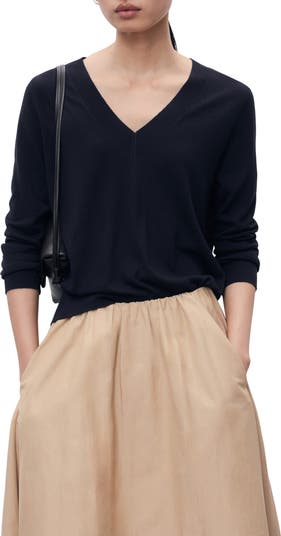 Dropped shoulders enhance the subtle relaxed fit of this fine-gauge sweater that transitions easily from work to weekend.