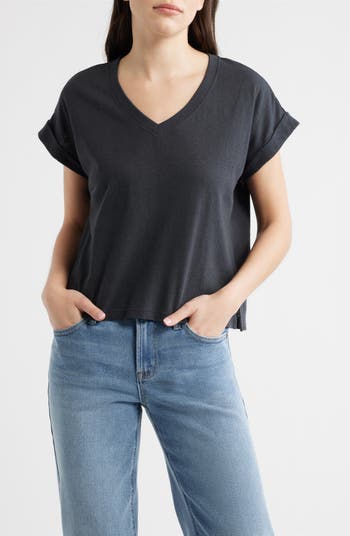Made from a lightweight blend of cotton and linen, this V-neck T-shirt is ready to play a key role in your casual wardrobe.
