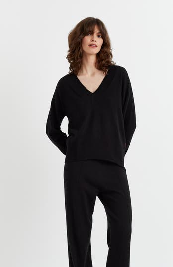 Our best-selling style is back, this sweater combines our much-loved slouchy silhouette with a flattering V neckline. It is finely knitted from a blend of wool and cashmere for a lightweight handle.