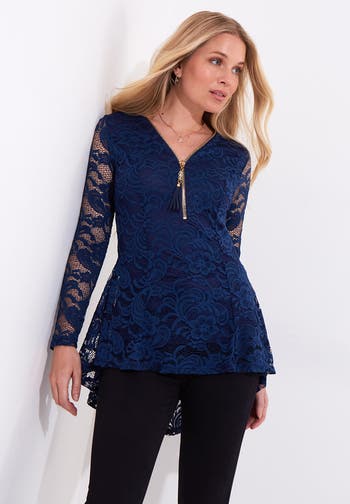 What’s a night-out top without a little lace? Joe Browns plus size women’s lace tunic is made for painting the town red. With a flattering silhouette that looks good on every figure and a zipper V-neckline that lets you control how much you show, it’s as versatile as it is stylish.