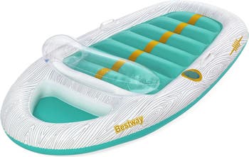 Bestway - The H2OGO!® Vacation Yacht™ Lounge will make you feel like you're coasting towards Santorini or the Galapagos without having to leave your own backyard! This stylish teal and white lounge features a comfortable headrest to keep you propped up and cozy. It also features a built-in cup holder for your favorite beverage, and a built-in storage area (perfect for holding your phone, portable speaker, or other valuables). The storage area also doubles as a cooler, so toss some ice in the compartment and your drinks will stay cool while you coast. The heavy-duty handles make it easy to pop in the water for a dip and pull yourself back on the float with ease. Work on your tan, lose track of time, and sail away on the H2OGO! Vacation Yacht Lounge! Easy inflate, and easy deflate make this lounge the perfect compansion for your relaxing pool day. Teal and white float with unqiue gold stripe. OVERVIEW: Size: 7 ft. 1 in. x 46 in. (2.16 m x 1.17 m). Fits 1 Adult. CONTENTS: 1 inflatable vaction yacht lounge, 1 repair patch.