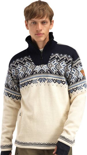 Stylish and functional the Dale of Norway Vail Weatherproof Sweater uses Norwegian wool to keep us comfortable and cool.