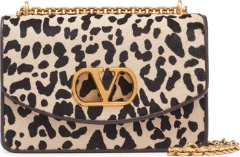 Valentino's Vain bag is an instant classic in spotted calf hair with golden VLOGO hardware gleaming on the front of the structured style. The pull-through chain strap easily adjusts for shoulder or crossbody wear, while the compact size and organized interior make it perfect for carrying your daily essentials.