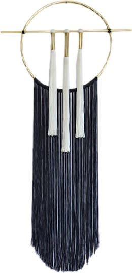 Handcrafted by artisans in Mexico, this wallhanging is a beautiful accent for any space. Brass ring are handwoven with 100% nylon yarn.