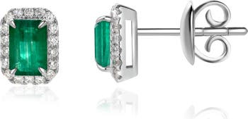 Emerald & Diamond Halo Stud Earrings