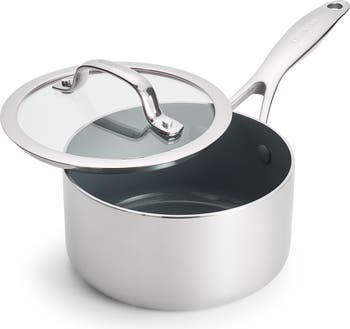 Create sauces, sides and soups with this versatile stainless steel saucepan boasting an innovative Thermolon Infinite8 nonstick ceramic coating.