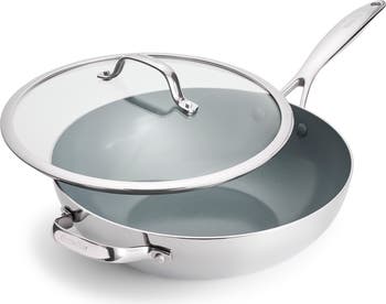 Fry up or braise kitchen masterpieces with this versatile stainless steel wok boasting gently sloped sides and an innovative Thermolon Infinite8 nonstick ceramic coating.