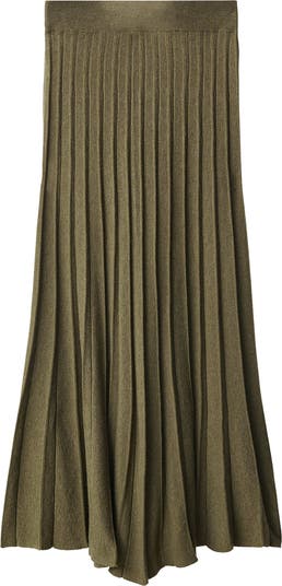 MANGO Valenti Pleated Maxi Sweater Skirt, Main, color, Khaki Green