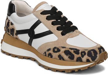 Leopard-print panels bring bold contrast to this lace-up sneaker crafted from rich leather and grounded by a durable, trail-inspired sole.