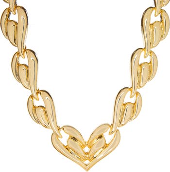 A central heart and sculptural chain create a contemporary necklace that's striking and luxurious.