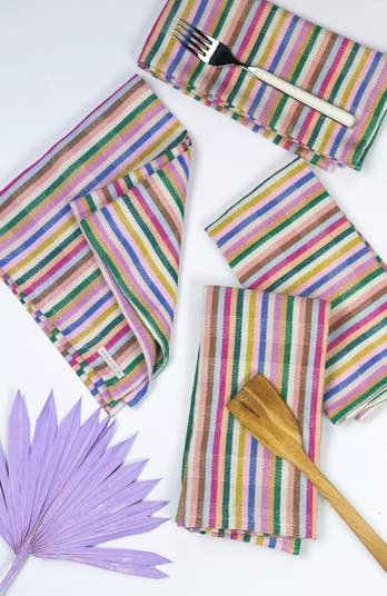 Valentina Rainbow Striped Handwoven Cotton Napkins, Set of 4