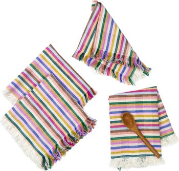 Valentina Rainbow Striped Handwoven Cotton Party Napkins, Set of 4