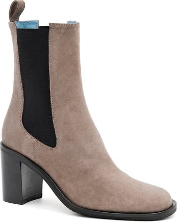 Petalo Double Gored Bootie - Beige Italian Nabuk 25 in Block Heel