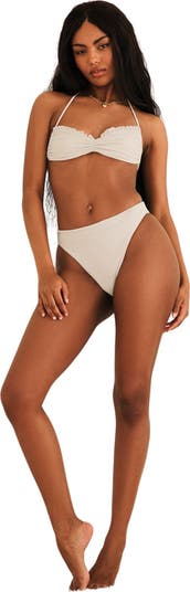 A bralette-style bikini top with a scrunch and tie detail at the center. Valentina’s open-back design makes for a subtle yet sexy look. Featuring a lacey trim at the top. Pair Valentina with our Besties or Slay Bottoms.
