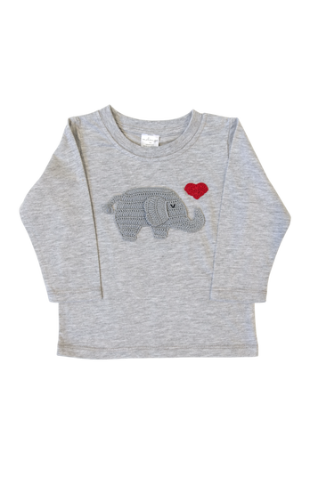 For Valentine's Day or everyday! Comfy t-shirt with a hand-appliquéd elephant and heart.