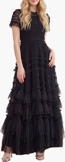 The Valentine Ruffle Gown is a signature Needle & Thread style developed with textile ruffles and flattering tulle, creating a romantic look. The ruffles cascade down the dress, starting smaller and gradually getting bigger towards the hem to create soft, fluid movement. Crafted from our signature Needle & Thread kisses tulle. Make a statement in the Valentine.
