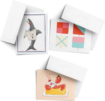 Valentine's Day Friendship Greeting Card Pack Sets, 'Lobster Buttah Call, Sharky Love, Nautical LOVE Flags'
