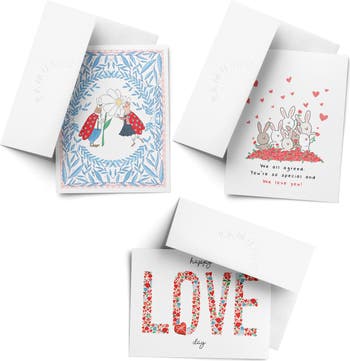 Valentine's Day Friendship Greeting Card Pack Sets, 'Love Bugs, Bunnies We Love You, Love Day'
