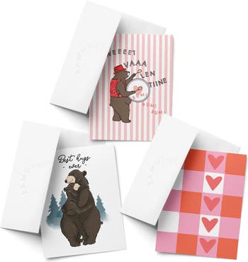 Valentine's Day Friendship Greeting Card Pack Sets, 'Sweet VA LEN TINE Bear, Best Hugs Ever, Heart Grid'