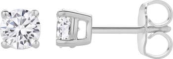 A brilliant 0.6 carat lab grown diamond solitaire earrings showcased in a classic 4 prong basket setting. Crafted in 14k gold with a premium push back post which combines timeless elegance with comfortable wear. Diamond carat weight may fluctuate 0.05 carats ABOVE the stated number.