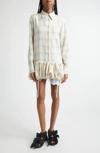 Valerian Plaid Long Sleeve Bubble Hem Mini Shirtdress