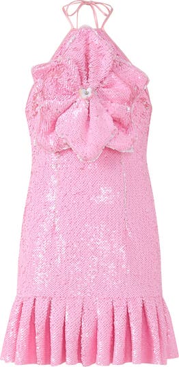The Valery Sequin Mini Dress is made for sparkling moments and main-character twirls. Featuring a statement halter neckline and an oversized sequin bow detail, this party-perfect silhouette feels playful yet polished. Whether it's birthdays, celebrations, or special occasions, Valery is the ultimate dress-up dream.