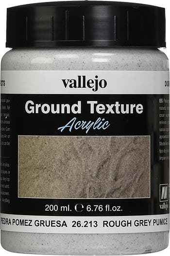 TEXTURE ACRYLIC: GREY PUMICE - Includes: (1) 200ml (6.76oz) texture acrylic pot. The stone textures range is a selection of acrylic, waterbased textures from Acrylicos Vallejo.They can be mixed with one another, with acrylic colors (Modelcolor, Game Color and Model Air) and other diorama materials. All products are non toxic and dry to a resistant and permanent finish. Drying time depends on the thickness of the applied product and the humidity of the atmosphere, and can vary from 45 minutes to hours or even days. Rough Grey Pumice is a very heavy paste of natural grey pumice stone. For surface building and the formation of extra high reliefs and peaks. Dries completely opaque. For more flexibility, add some Extra Heavy Gel. VALLEJO: Since Amadeo Vallejo founded the company in New Jersey (USA) back in 1965 and before returning to Spain, the core of Vallejo’s business has always been the development of acrylic colors; from the late 60s for animation studios, through the first acrylics for fine arts manufactured in the 70s, to the first ranges for modeling formulated in the early 90s.