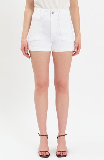 These high-rise shorts serve up major throwback energy with their faded low-stretch denim and oversized patch pockets that are all about that cool, retro charm.