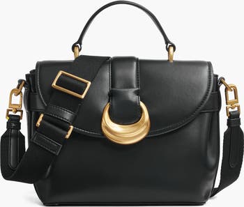 Crafted in leather, this satchel by Donna Karan New York is perfectly sized and accented with hand painted, brushed gold-tone hardware and a chic top handle.
