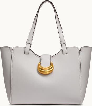 This tote by Donna Karan features a classic silhouette crafted in leather. Adorned with gold-tone hardware and accents, it opens to an interior with multiple pockets to keep you organized.