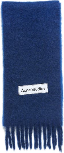 Wide, fuzzy, fringed at the ends, and—most importantly—stitched with an oversized Acne Studios tag, this enormous, cocooning scarf is a quintessential cold-weather player in a mix of alpaca, wool, and mohair.