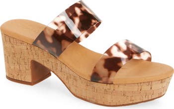 Boost your look with this platform cork sandal topped with translucent leopard-print straps that only add to the fun.