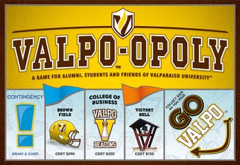 - THEMED OPOLY Strategy board game. A fun game celebrating the beautiful & vibrant University. Engaging & Educational. Go Valpo!